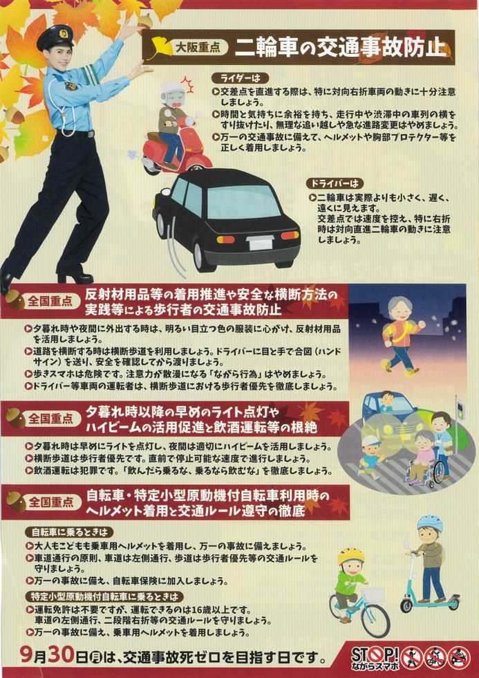 このような情勢を受けまして、11月27日、大阪府知事による「交通死亡事故多発警報」が発令されました。